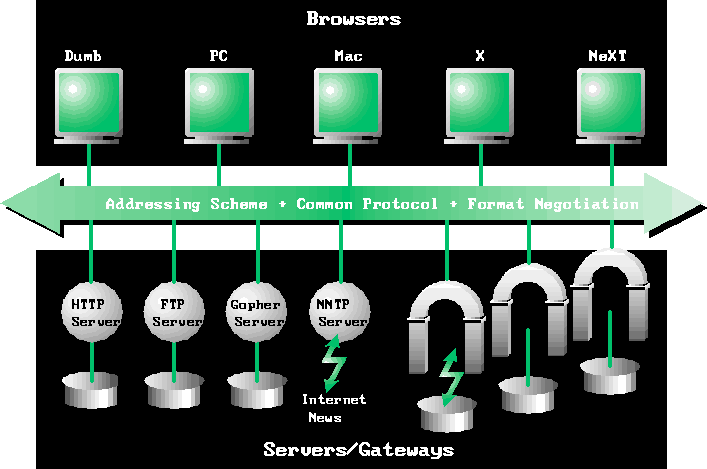 The ability of web browsers to communicate and negotiate with remote servers allows users on a wide variety of platforms to access information from many different sources around the world.
